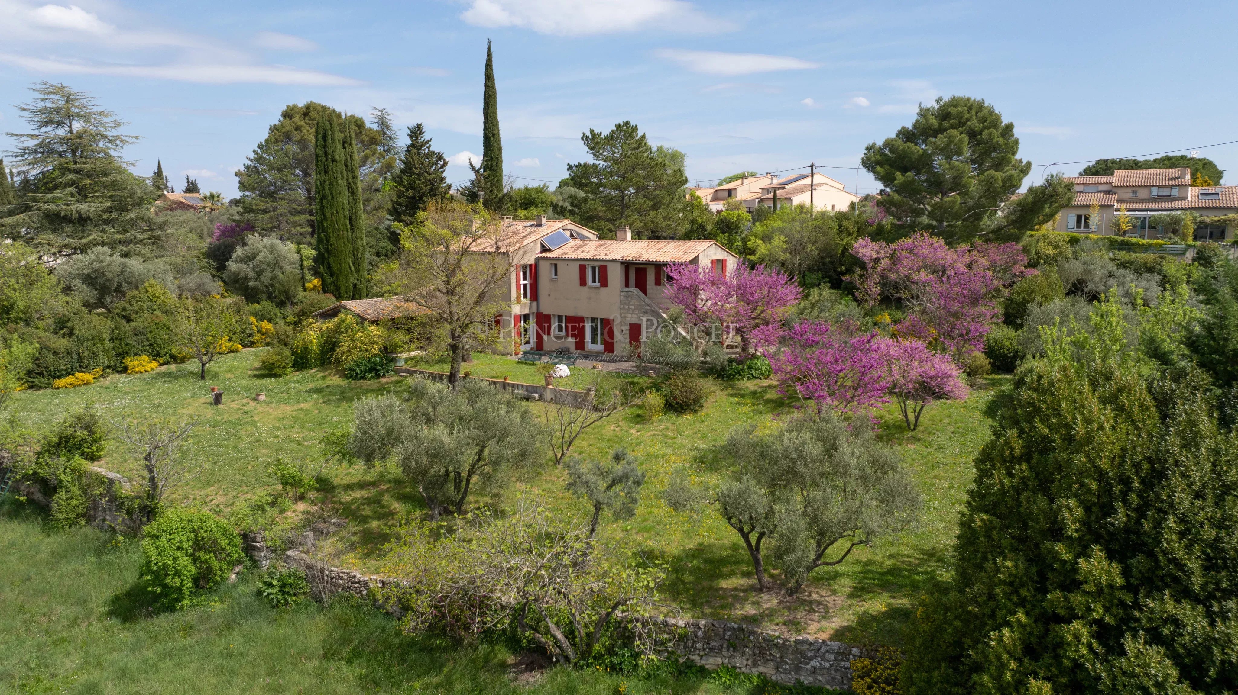 Terrain paysager de plus de 7200 m² avec oliviers, arbres de Judée en fleurs, cyprès, lauriers, et autres espèces méditerranéennes...