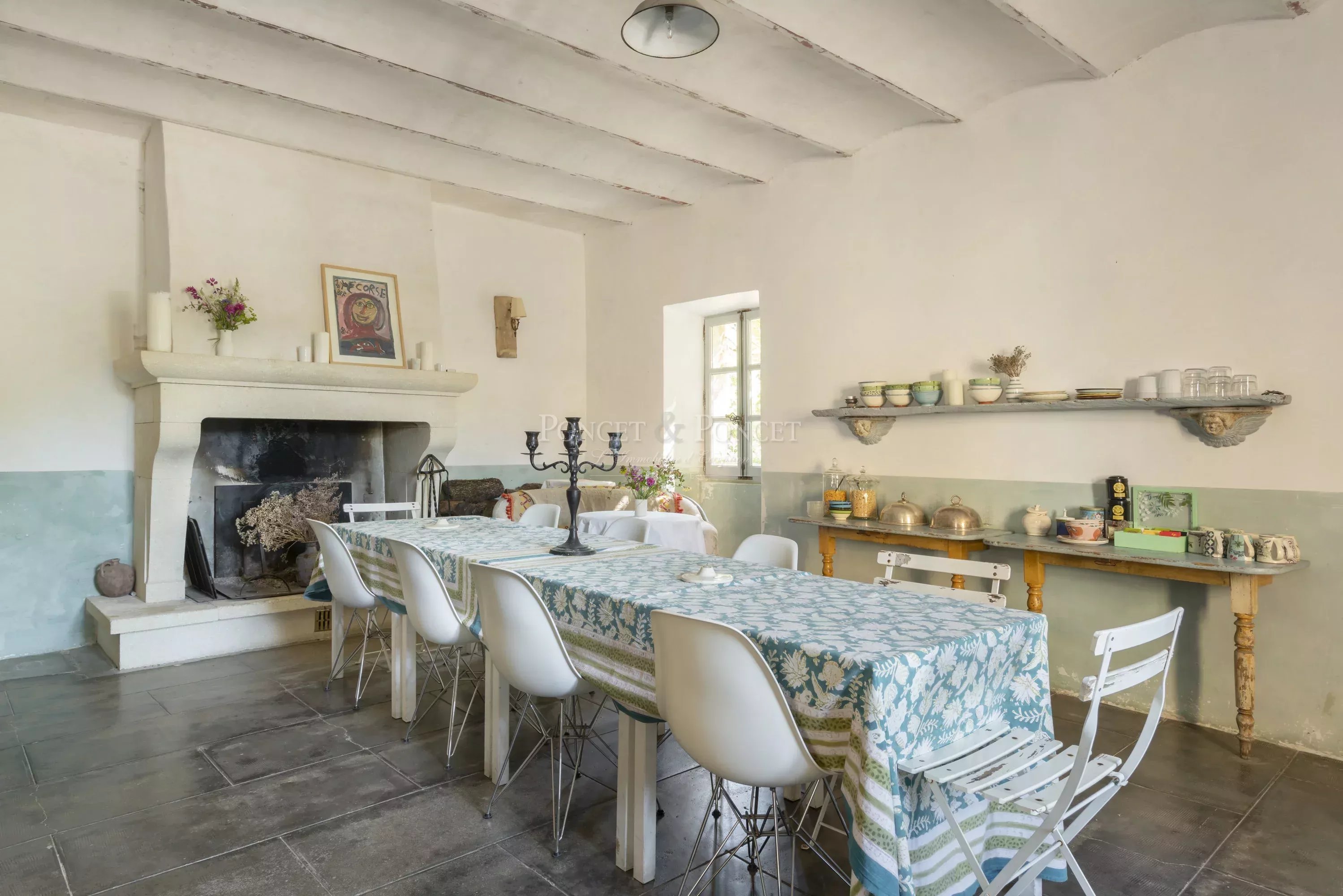À seulement 10 minutes du centre historique d’Uzès, cette majestueuse propriété en pierre de 472 m² habitables séduit par son caractère authentique, sa discrétion et son atmosphère artistique. Restaurée avec un goût raffiné, elle allie avec élégance confort contemporain et charme provençal, dans un cadre paisible et verdoyant.