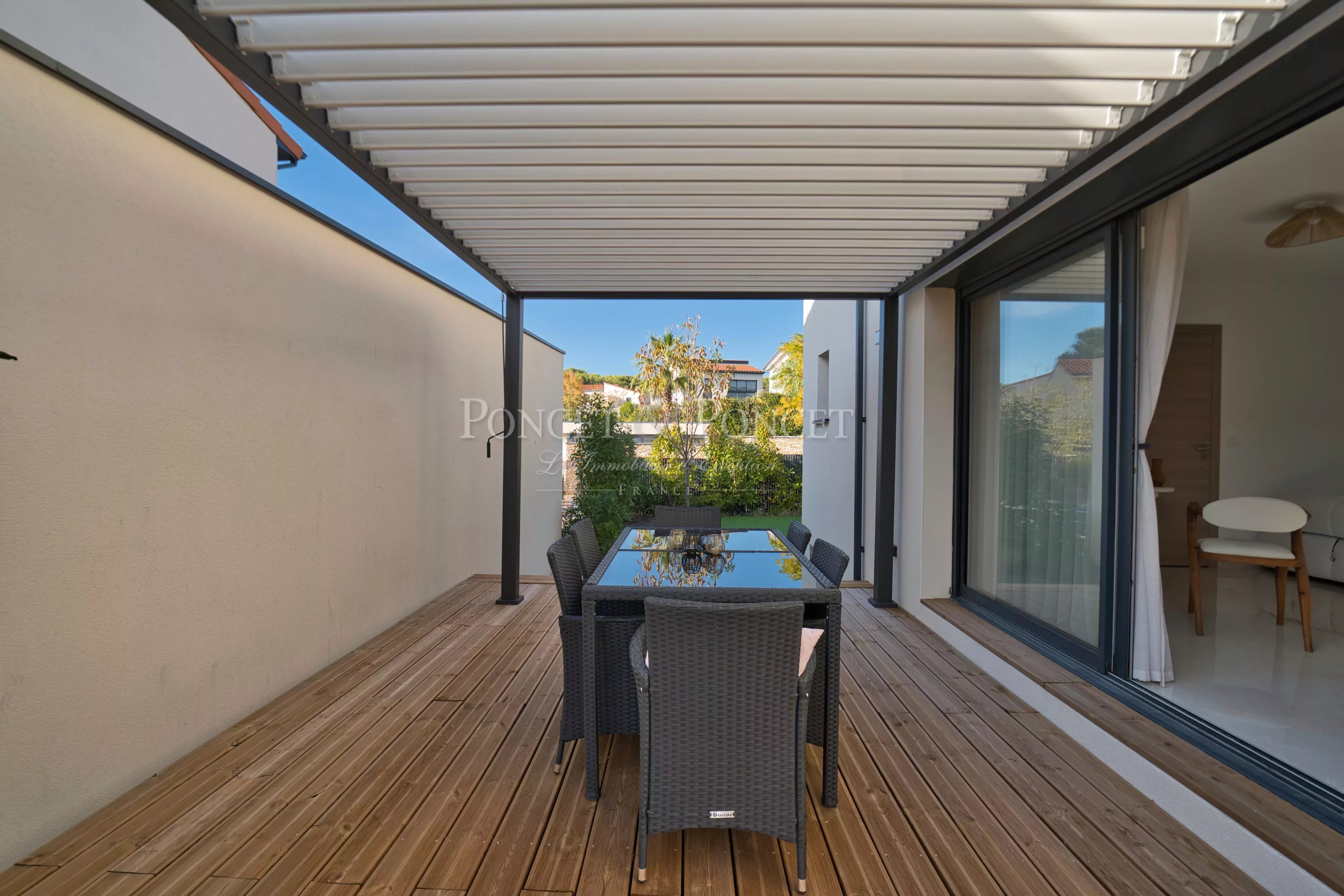 * Terrasse avec pergola bioclimatique