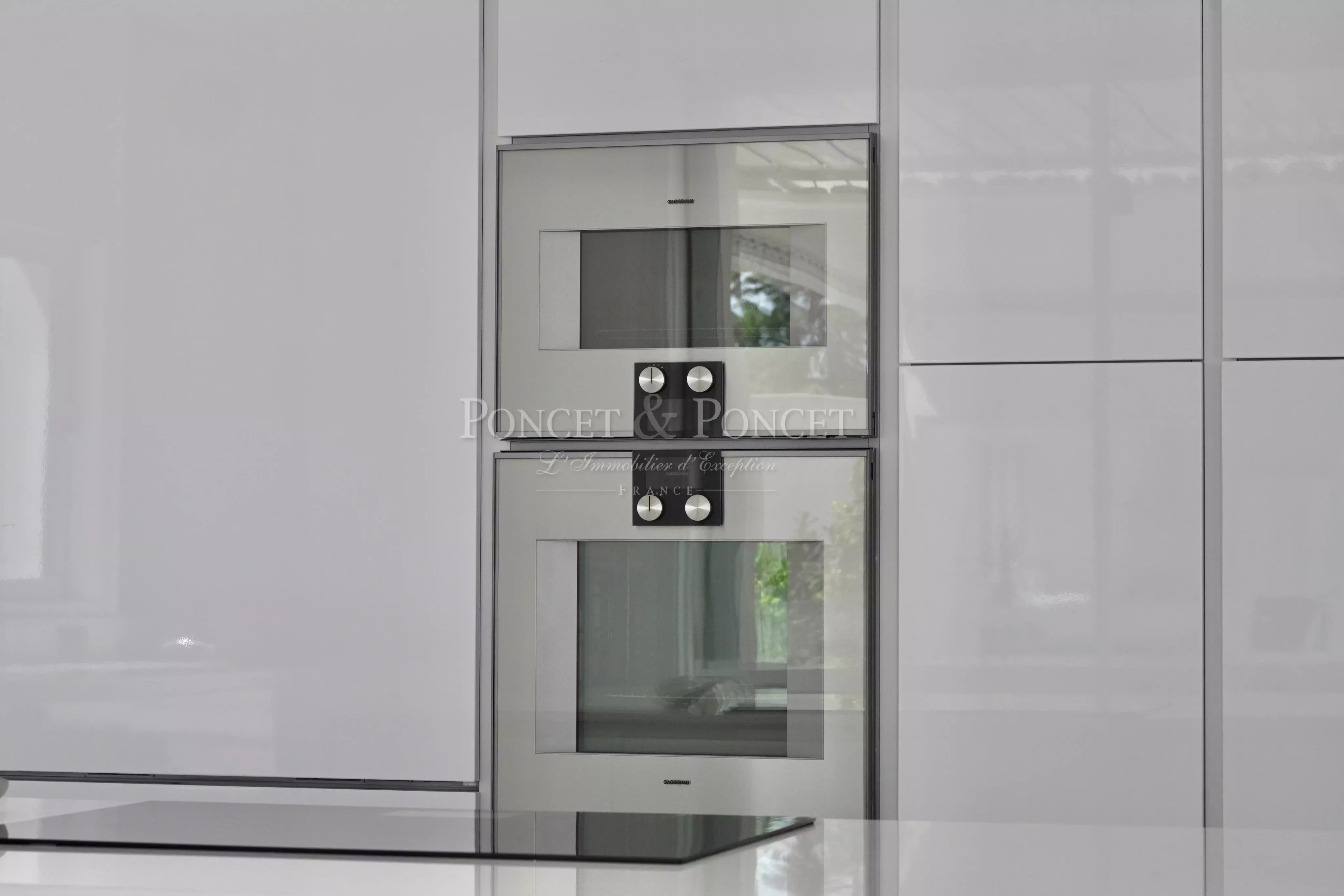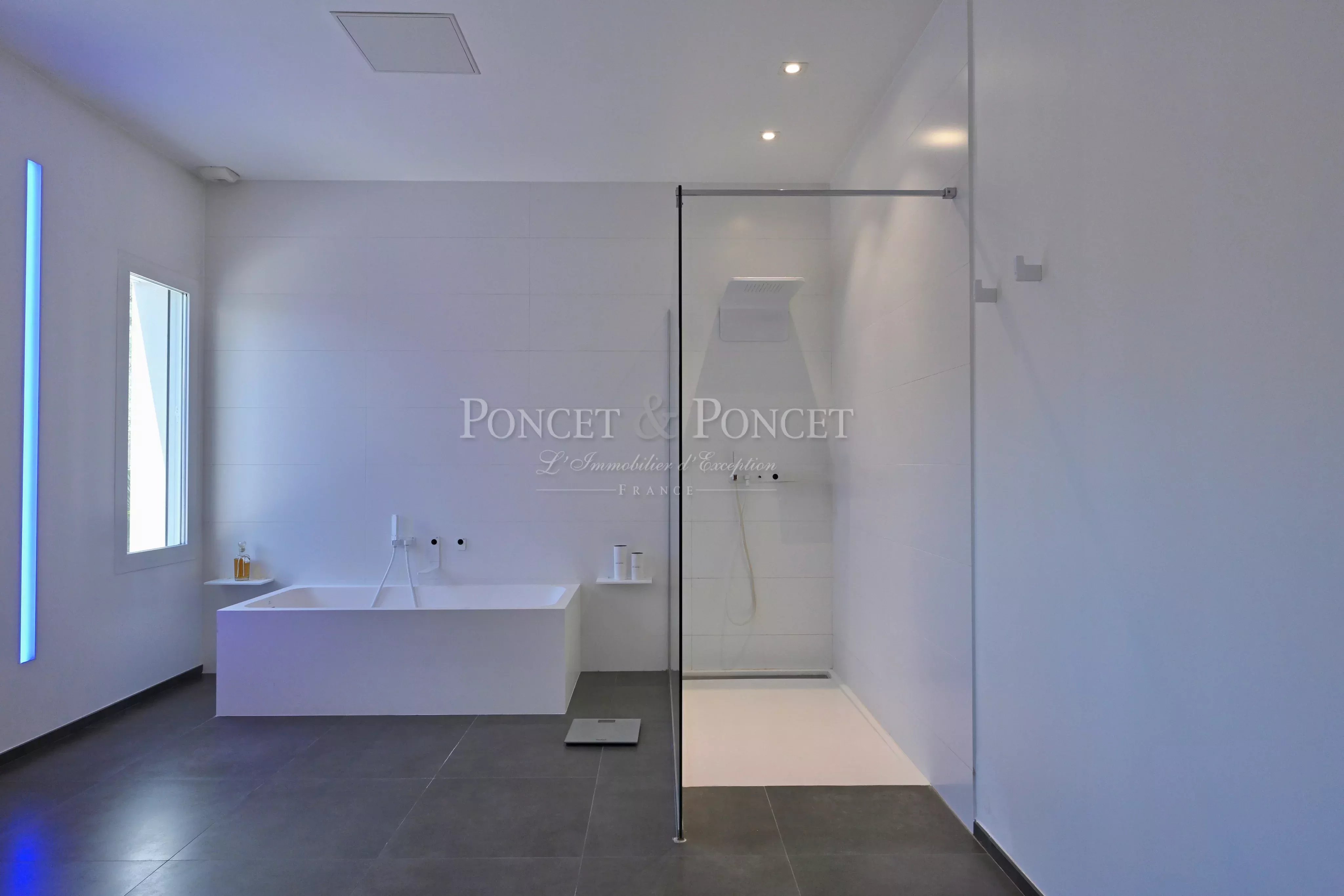 Le confort est absolu : chauffage au sol, climatisation centralisée gainée, système d’alarme, domotique Bose, panneaux solaires pour la production d’eau chaude, sans oublier une cave à vin d’exception en sous-sol. Chaque détail a été pensé avec exigence.