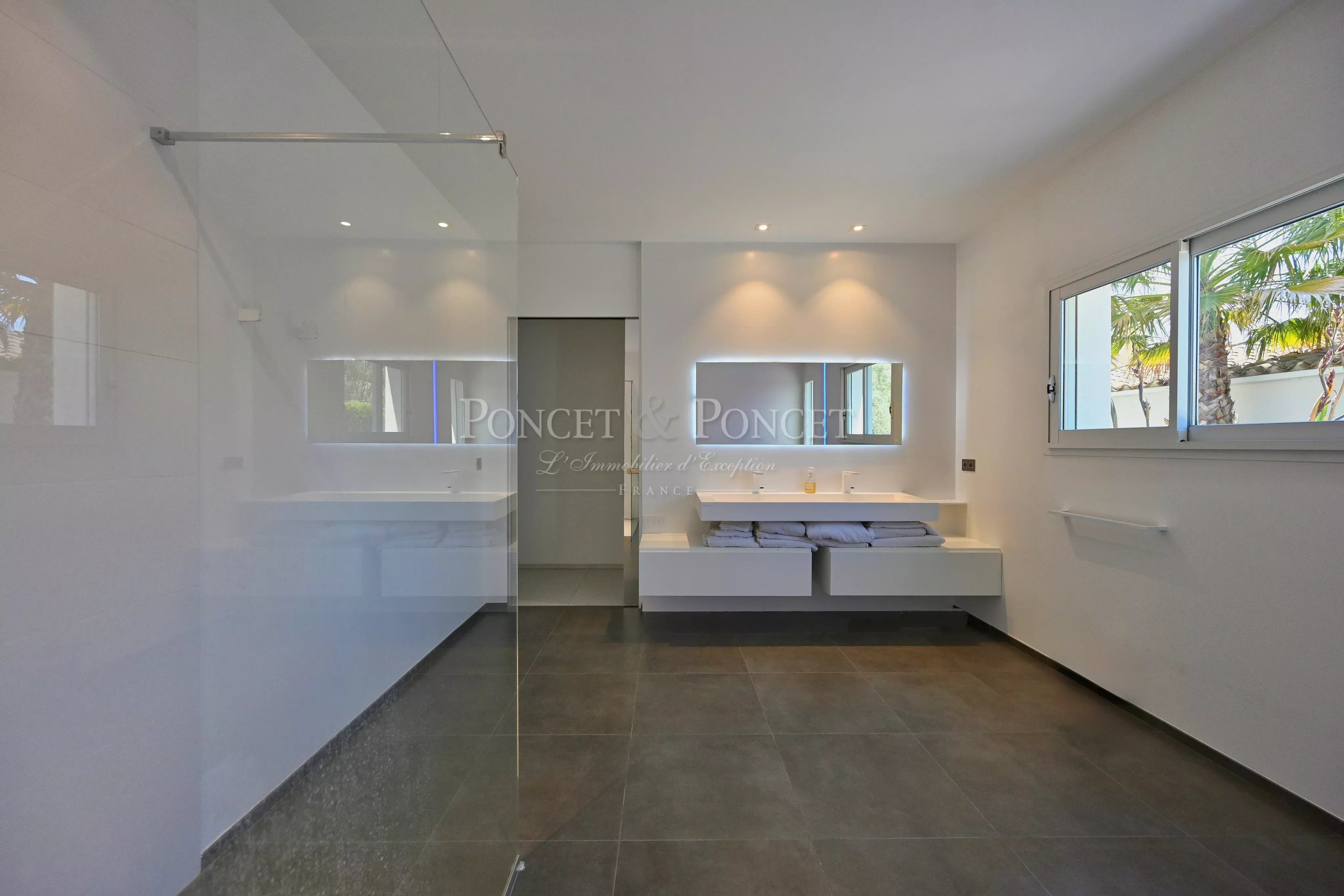 La villa dispose au total de quatre véritables suites,( dont une master) chacune bénéficiant de sa propre salle d’eau et de son dressing. À l’étage, une salle de sport de 24 m² peut facilement être aménagée en cinquième chambre, selon vos besoins. Dans le même esprit que les pièces de vie, toutes les chambres se prolongent vers l’extérieur grâce à de larges terrasses, offrant une ouverture agréable sur le jardin et la lumière naturelle.