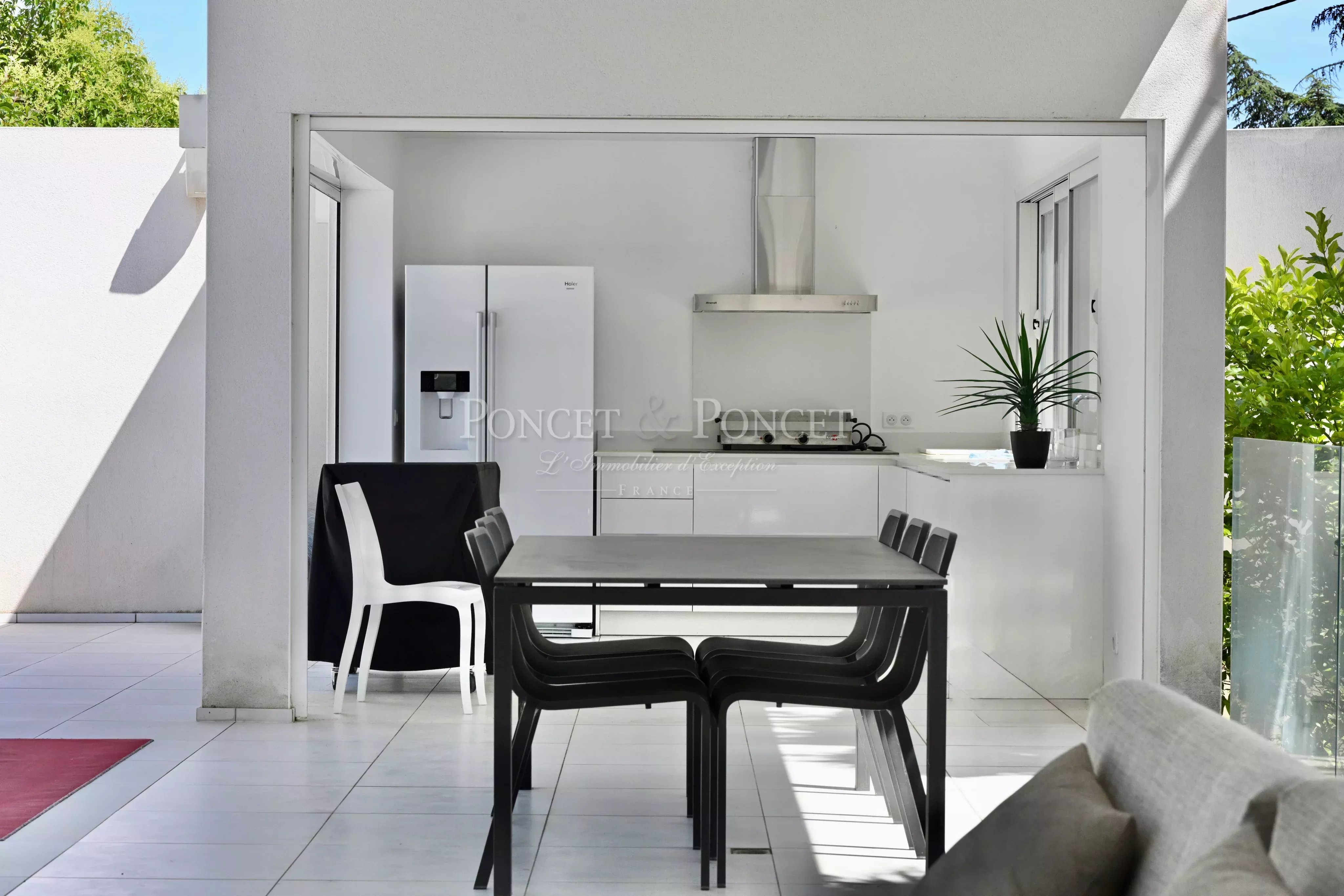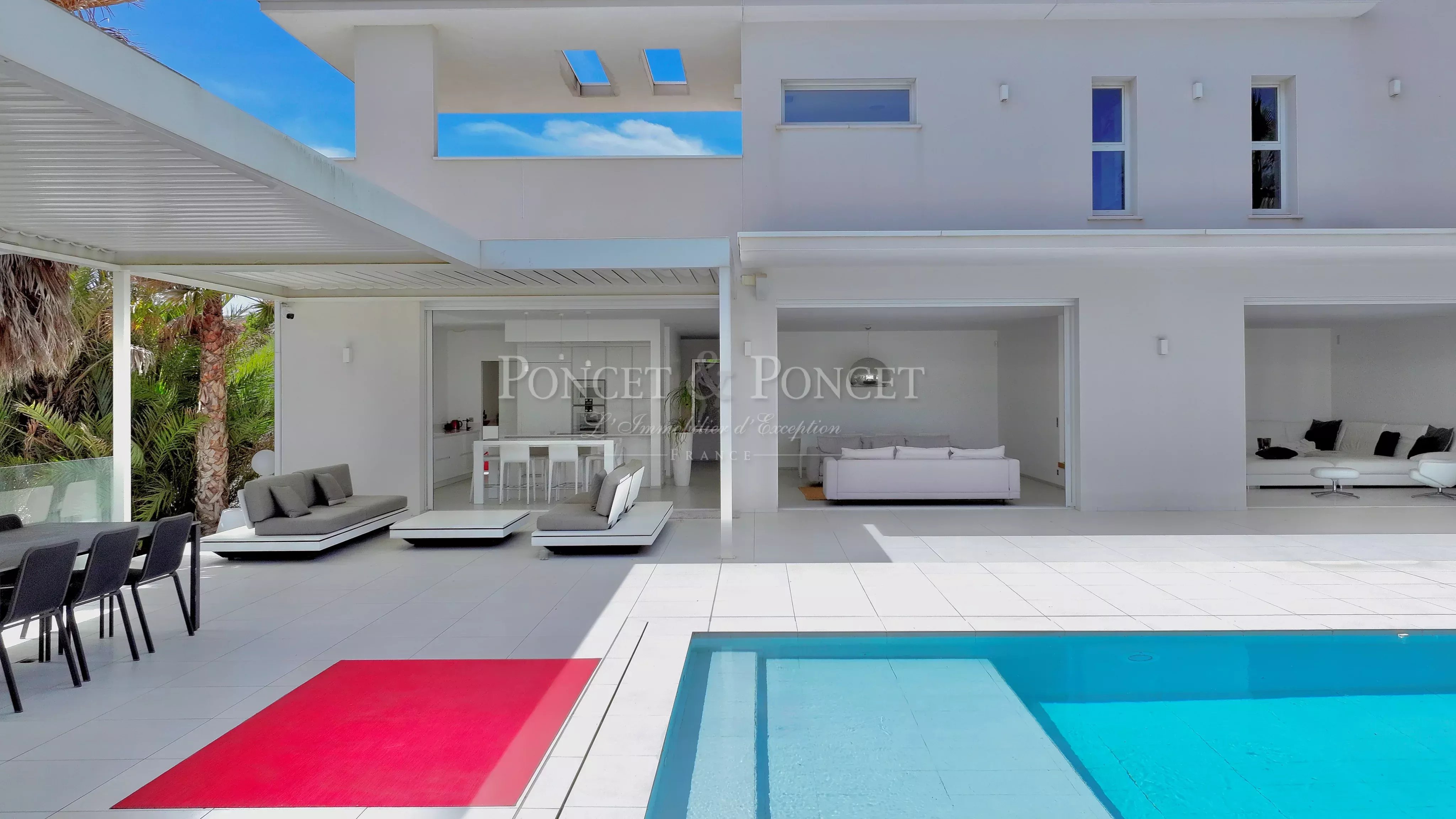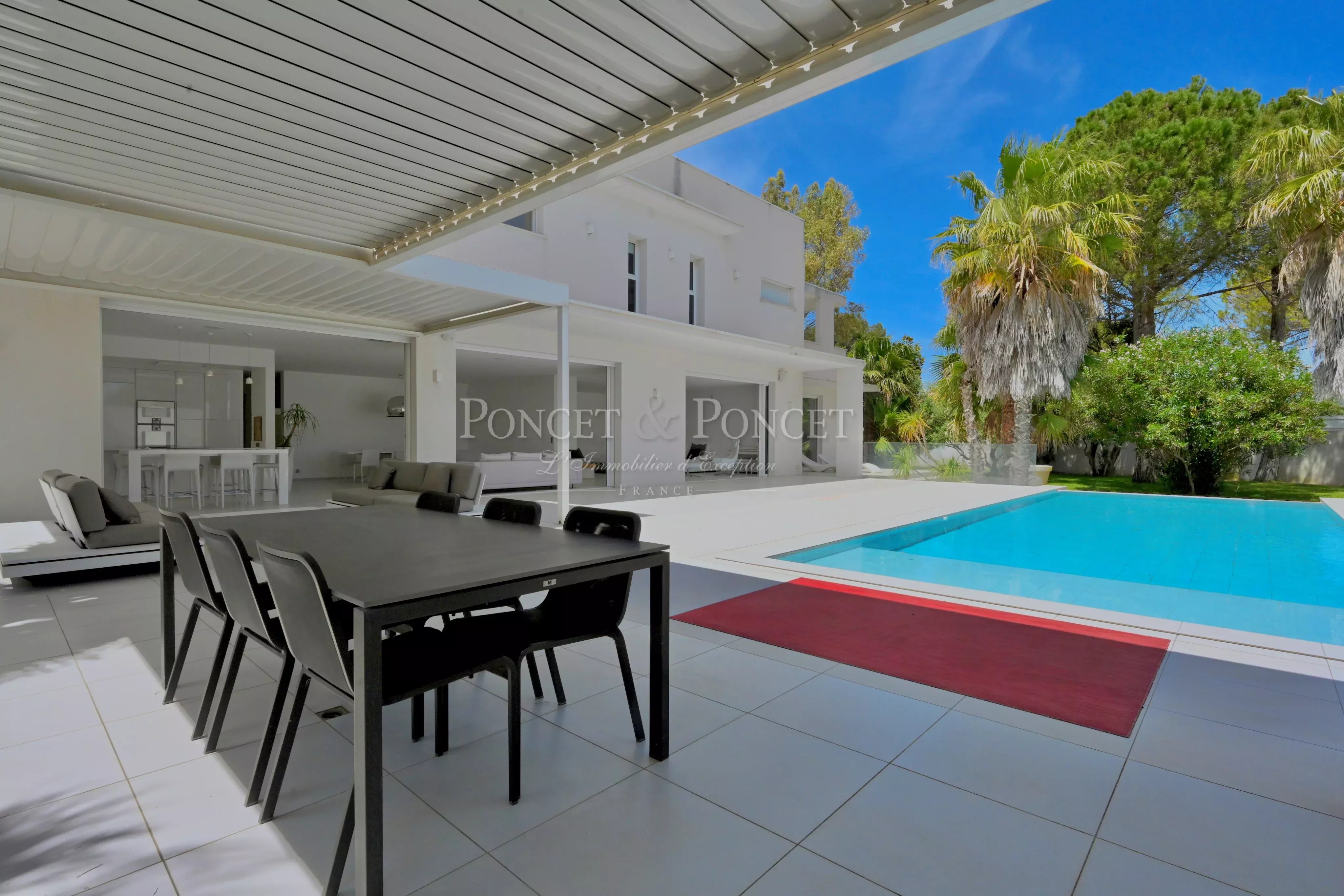 À l’extérieur, vous profitez d’un jardin paysager soigneusement entretenu, organisé autour d’une piscine moderne avec pool house entièrement équipé et pergola bioclimatique. Côté stationnement, la propriété dispose de 5 places couvertes et peut accueillir jusqu’à 10 véhicules supplémentaires sur un vaste parking sécurisé