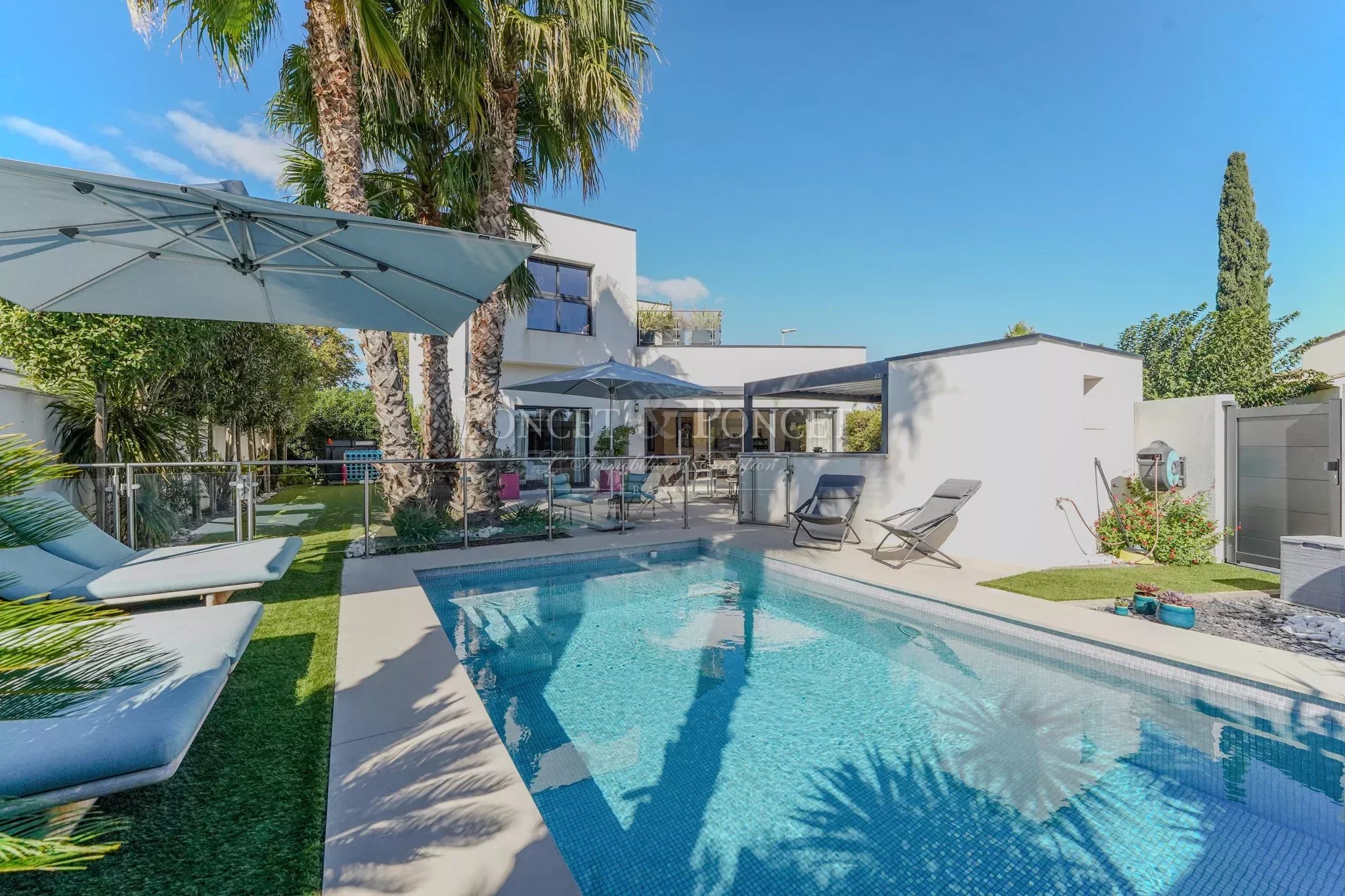 À l’extérieur, le jardin paysagé et la piscine sont complétés par un pool house équipé d’une pergola bioclimatique. Une triple exposition (Sud, Est, Ouest) garantit une luminosité optimale tout au long de la journée. De plus, un garage spacieux, un espace pour vélos et de nombreux rangements ajoutent au confort de vie.