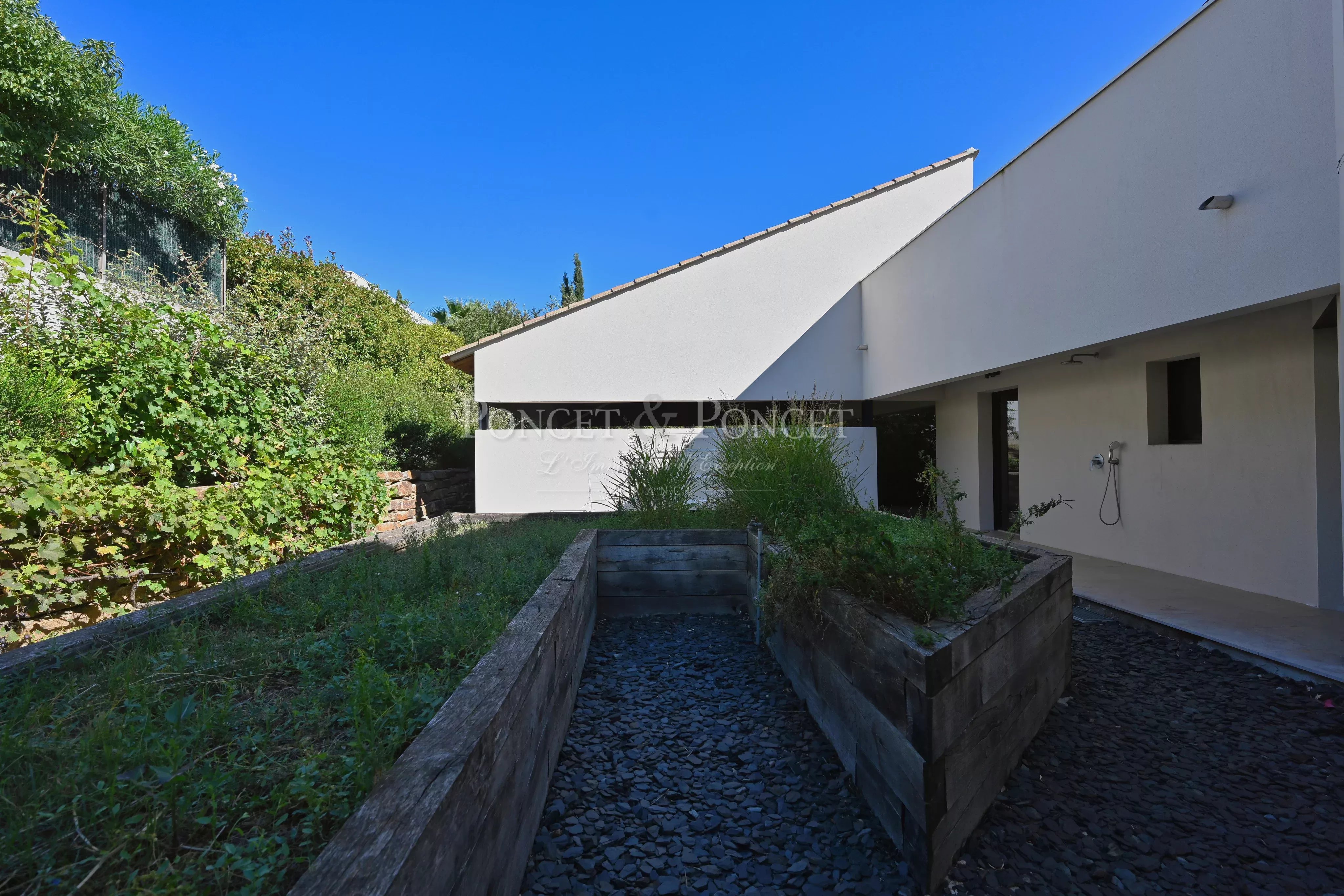 Située en fond d’impasse privée à St-Gély-du-Fesc, à seulement quelques minutes de Montpellier, cette villa bénéficie d’un environnement paisible et verdoyant tout en restant proche des commodités, hôpitaux et des axes principaux. Une villa d’architecte rare doté d’une vrai réflexion architecturale, alliant volumes généreux, matériaux haut de gamme et prestations uniques, pensée pour une vie harmonieuse entre intérieur et extérieur. Une adresse d’exception pour les amateurs de design, de confort et de nature.