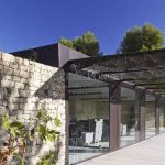 Dalle et murs en béton banché, terrasses en bois exotique IPE, escalier en marbre du Zimbabwe…